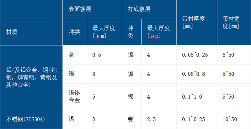 带材电镀也可以仅镀在基材的一部分。我们提供的方案可以减少贵金属用量并结合铝-Sn镀层和铝-Ni镀层以及基材各自性能。