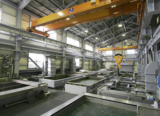 特别是,我们在半导体制造设备和电子电磁屏蔽方舱大板的零件处理方面有着良好的记录。近年来,大型零件的电镀需求增加。因此,我们利用大型电镀设备的经验,完成了一条超大型化学镀镍线。这条超大型化学镀镍生产线充分利用了在大型化学镀镍设备中积累的经验和专有技术,可以进行比以往更高质量的精密化学镀镍。锦华隆电子材料将在客户的指导和信任的基础上,继续迎接新难材料的挑战,期待您的咨询。