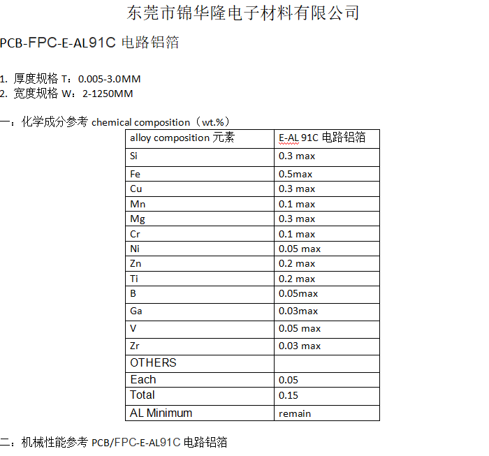 锦华隆电子材料PCB-FPC-E-AL91C电路铝箔