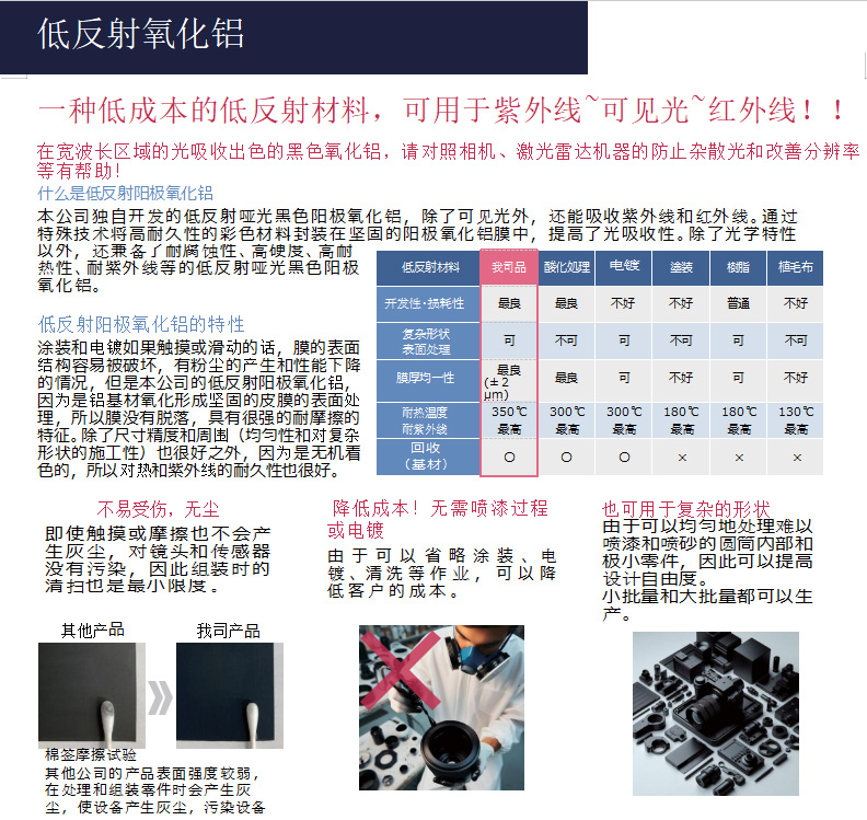 东莞市年邦铝业有限公司功能阳极氧化铝低反射阳极氧化铝(X-Black)